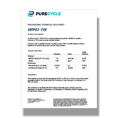Dissolution is a unique solution for companies in search of a recycled polypropylene (PP) that can replace virgin PP in a variety of applications. PureCycle is excited to offer this new range of sustainable solutions under our PureFive® brand. This global portfolio is organized into two categories: PureFive Ultra™ and PureFive Choice™. Both are GreenCircle Certified® for Recycled Content.